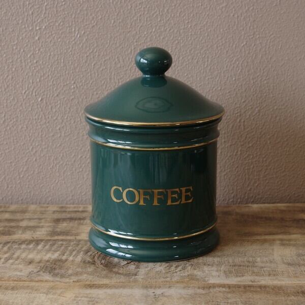 イギリス ヴィンテージ 雑貨 HORNSEA ホーンジー Regency ダークグリーン キャニスター COFFEE #191021 レトロモダン ゴールド リージェンシー コーヒー 容器 陶器