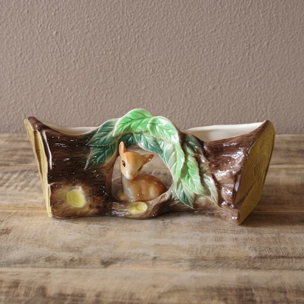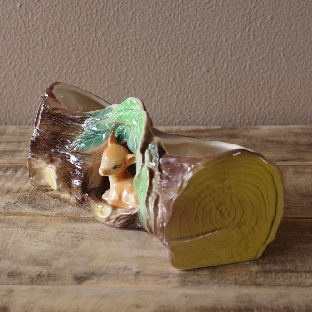 イギリス ヴィンテージ 雑貨 陶器 HORNSEA Fauna Royal 花瓶 置物 バンビ #191023-9 ホーンジー フォナ レトロ キッチュ 動物 切株 小鹿