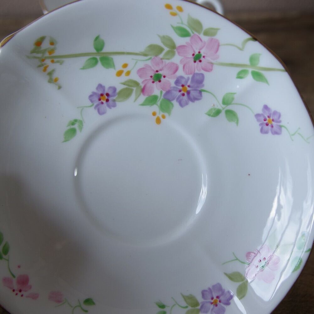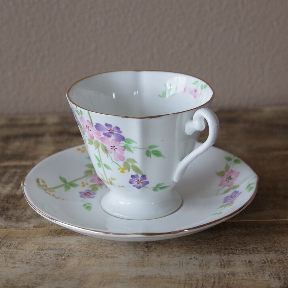 イギリス アンティーク食器 Roslyn ロスリン 手描き 花柄 カップ&ソーサー #191026-2 ハンドペイント レトロ ヴィンテージ CHINA 陶磁器