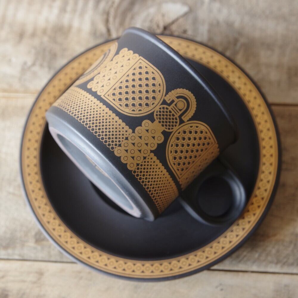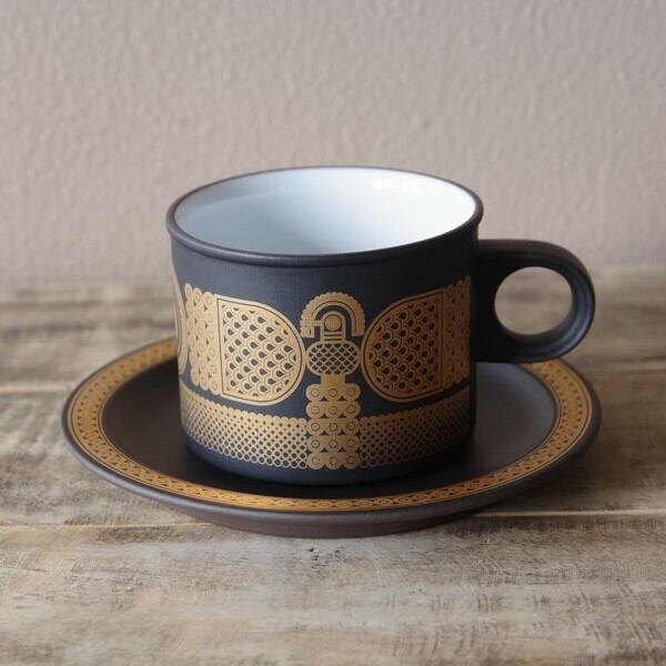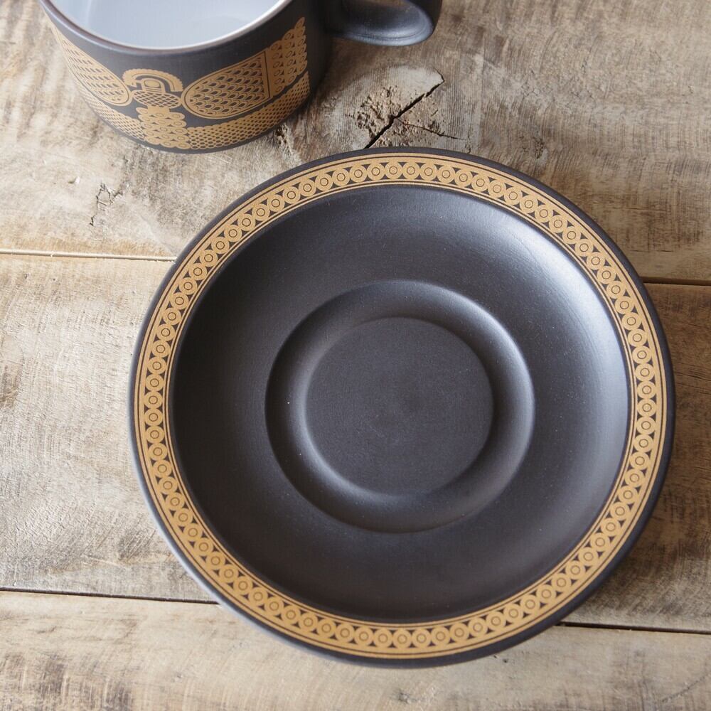 イギリス ヴィンテージ食器 陶器 HORNSEA ホーンジー ブラック ゴールド 鳥 コーヒーカップ ソーサー #191031-6 レトロ 黒 金 マット おしゃれ