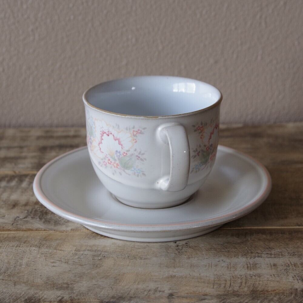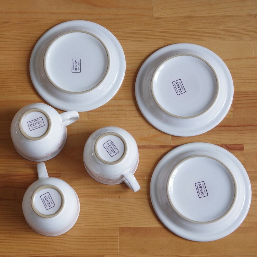 イギリス製 ヴィンテージ 食器 DENBY デンビー Tivoli 花柄 コーヒーカップ ソーサー #191101-1~3 アンティーク レトロ 陶器 チボリ 白