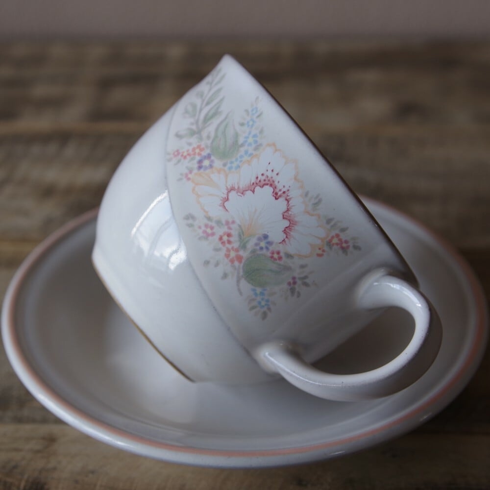 イギリス製 ヴィンテージ 食器 DENBY デンビー Tivoli 花柄 コーヒーカップ ソーサー #191101-4 アンティーク レトロ 陶器 チボリ 白