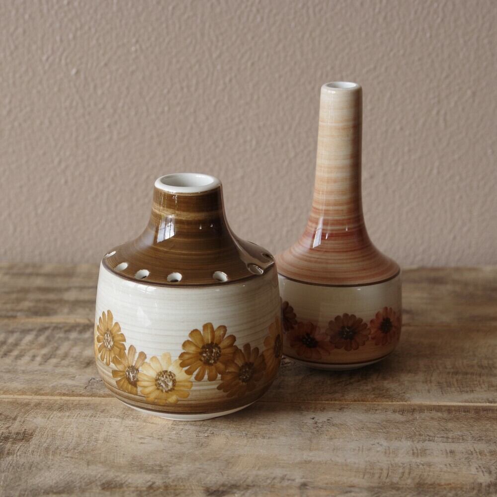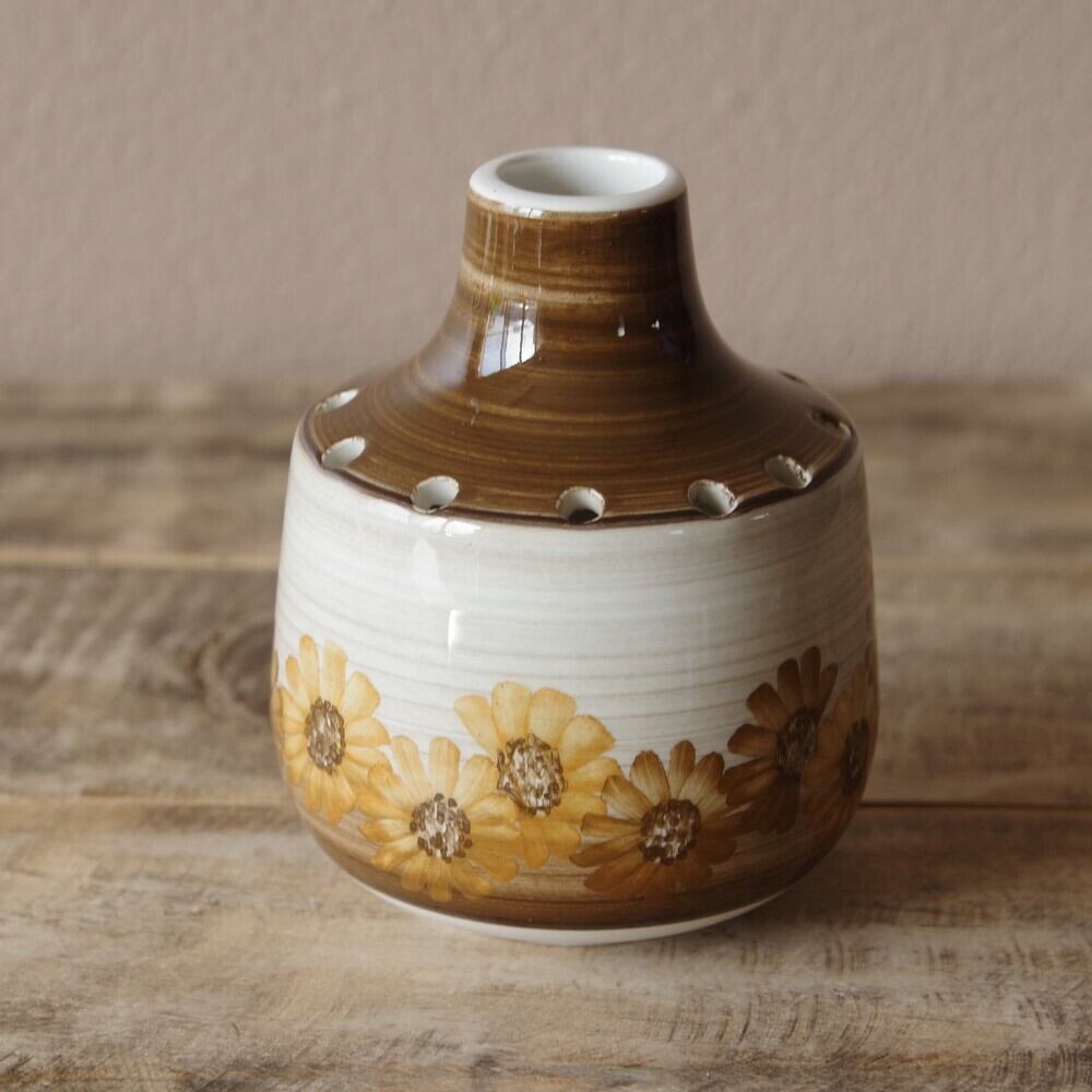 イギリス ビンテージ 雑貨 陶器 Jersey Pottery ジャージーポタリー 花瓶 ブラウン 花柄 #191101-2 アンティーク ミッドセンチュリー レトロモダン フラワーベース