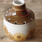 丸く小さな花瓶で、短い首がついています。