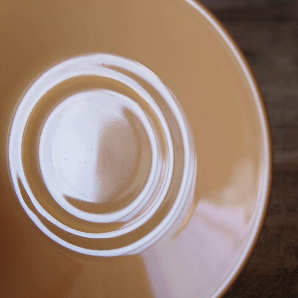 ソーサーは表側の面のみ、ブラウンがかったオレンジ色に塗られています。