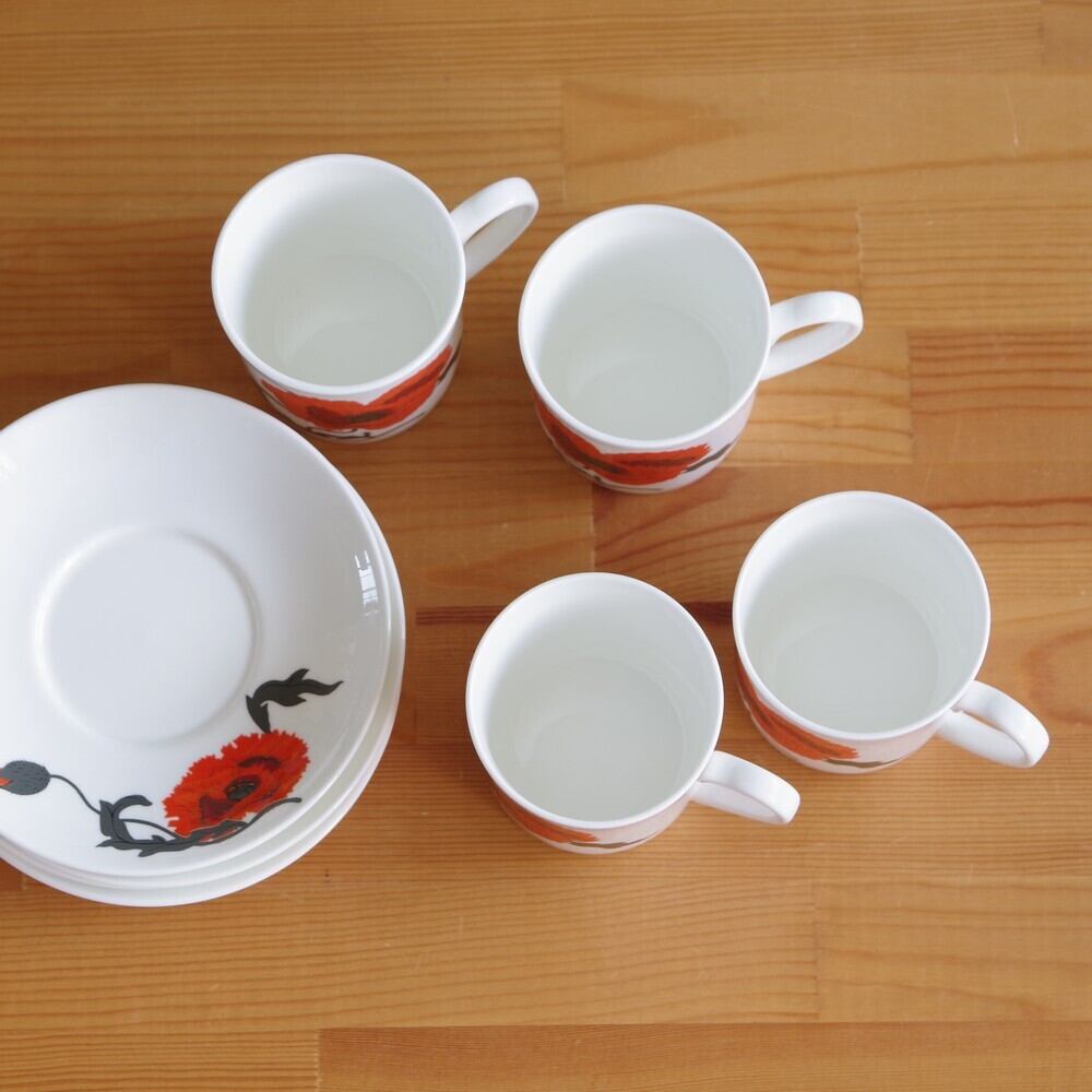 Susie Cooper スージークーパー コーンポピー コーヒーカップ ソーサー #191109-1~4 アンティーク ヴィンテージ ウェッジウッド 食器 ひなげし 花柄