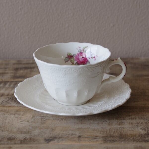 ヴィンテージ 食器 スポード ビリングズリーローズ 薔薇 花柄 ティーカップ ソーサー Spode Jewel #191115-2 ジュエル Billingsley Rose ピンク エンボス レース