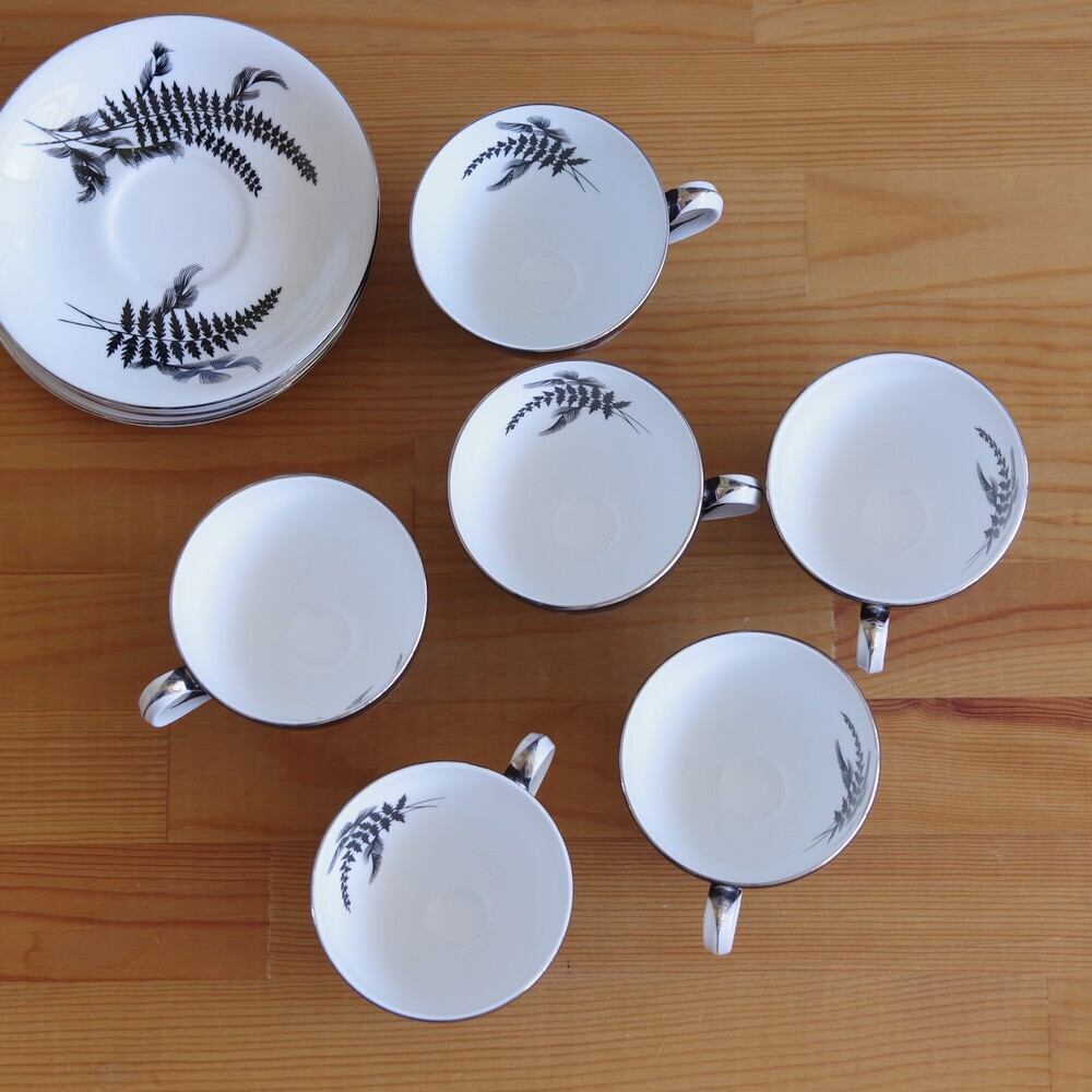 イギリス ビンテージ ロイヤルアルバート ナイト&デイ 白黒 モノクロ デミタスカップ ソーサー #191225-1~6 Royal Albert ミッドセンチュリー レトロ ボタニカル