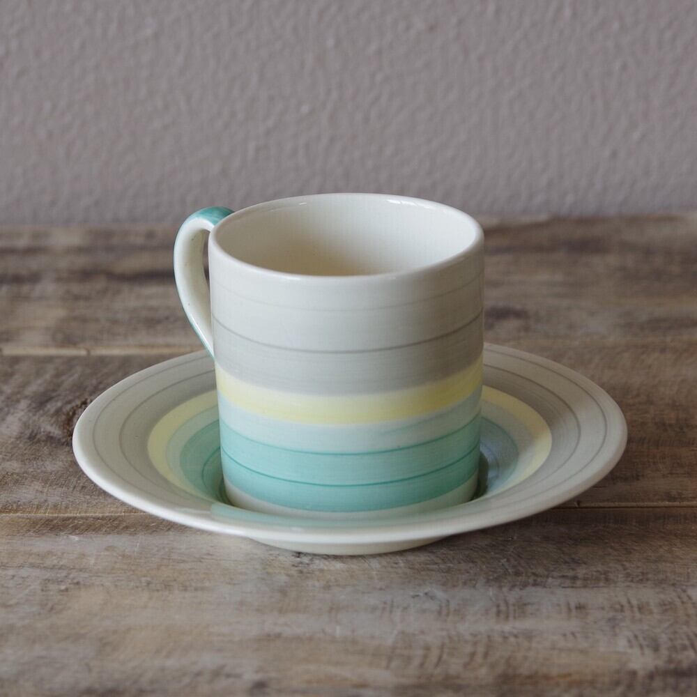 手描きされたパステルカラーのラインに味がある、レトロでかわいいカップです。