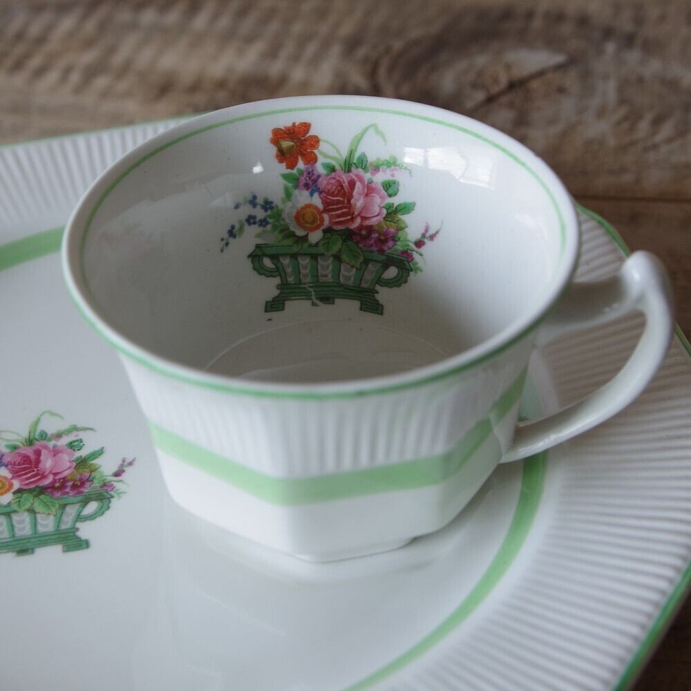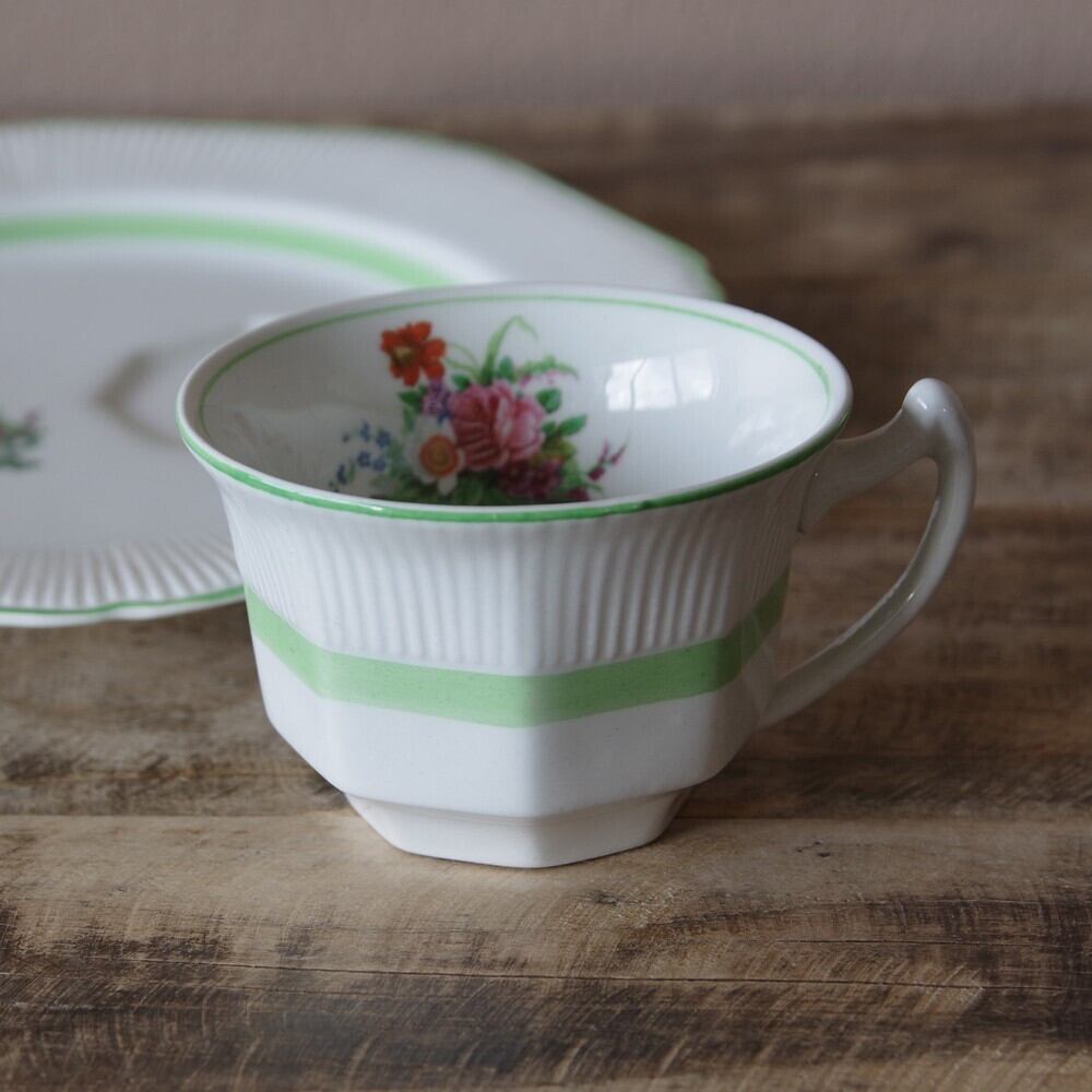 イギリス ヴィンテージ 陶器 ウッド&サンズ 薔薇 花 ブーケ カップ&ソーサー スナックセット #191227-1 Wood&Sons レトロ 食器 雑貨 BURSLEM ENGLAND