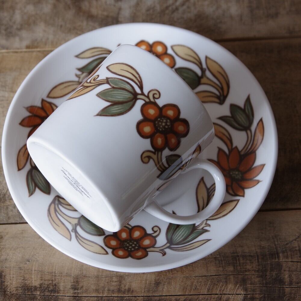 スージークーパー アールヌーボー ブラウン レトロ 花柄 コーヒーカップ ソーサー #200208-1 Susie Cooper Art Nouveau イギリス ヴィンテージ 食器