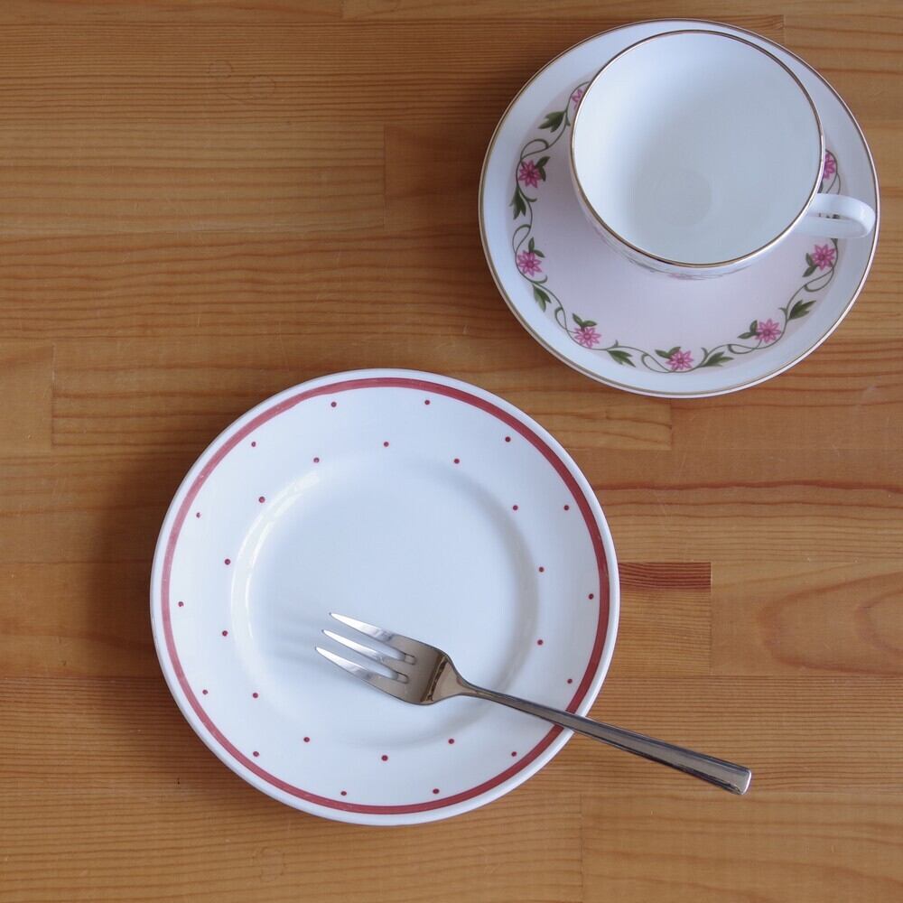 スージークーパー ポルカドット 赤 水玉模様 デザートプレート ケーキ皿 17cm #200209-1 イギリス 陶器 中皿 レトロ ヴィンテージ Polka Dots