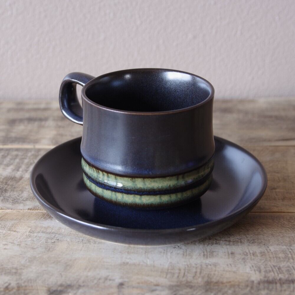 DENBY Kismet Bokhara デンビー キズミット ブラック コーヒーカップ ソーサー #200209-1,2 レトロモダン シンプル 渋め おしゃれ ヴィンテージ 黒