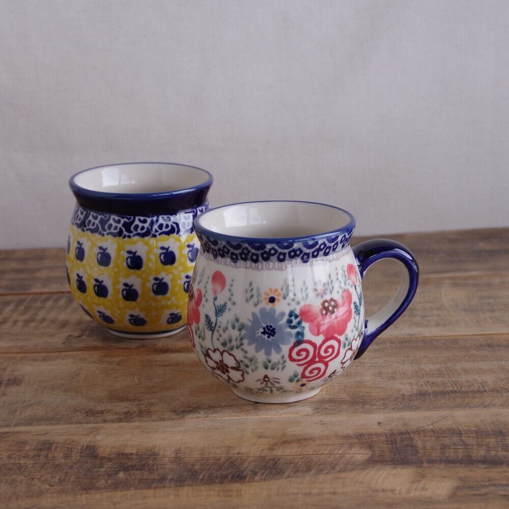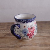 【再入荷】【新品】 ポーリッシュポタリー ポーランド食器 マグカップ 200ml 桃色 水色 花柄 K67-EO38 ボレスワヴィエツ陶器 Boleslawiec コーヒーカップ 北欧風