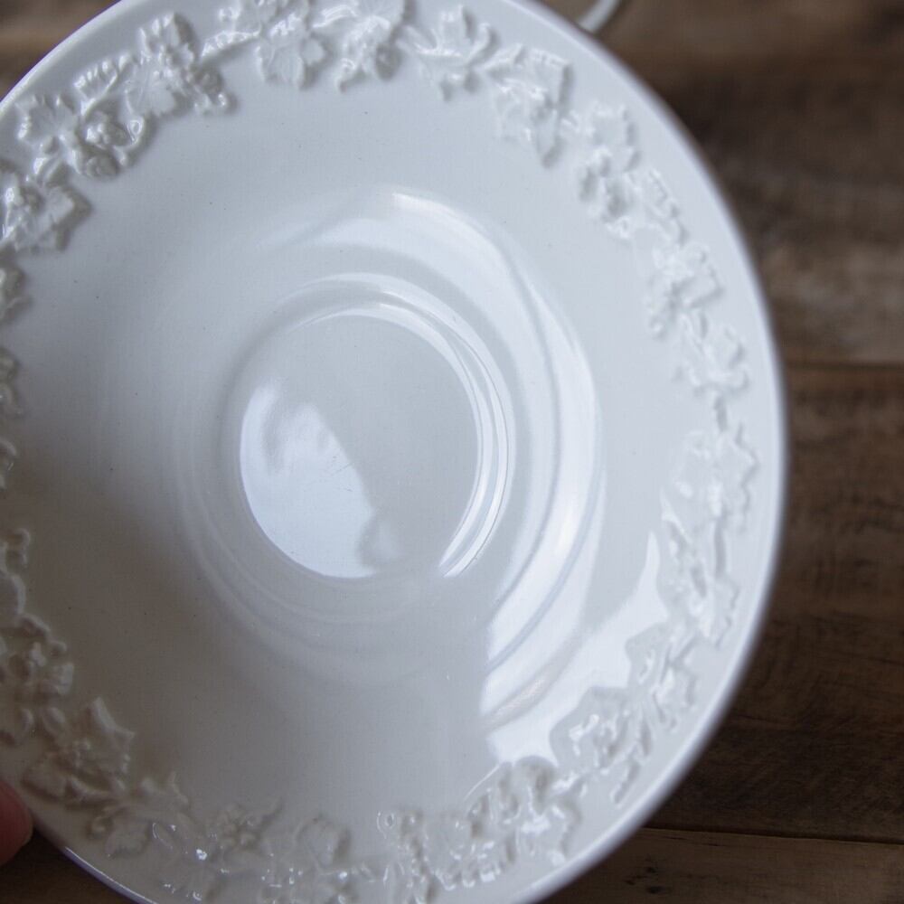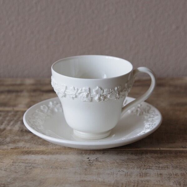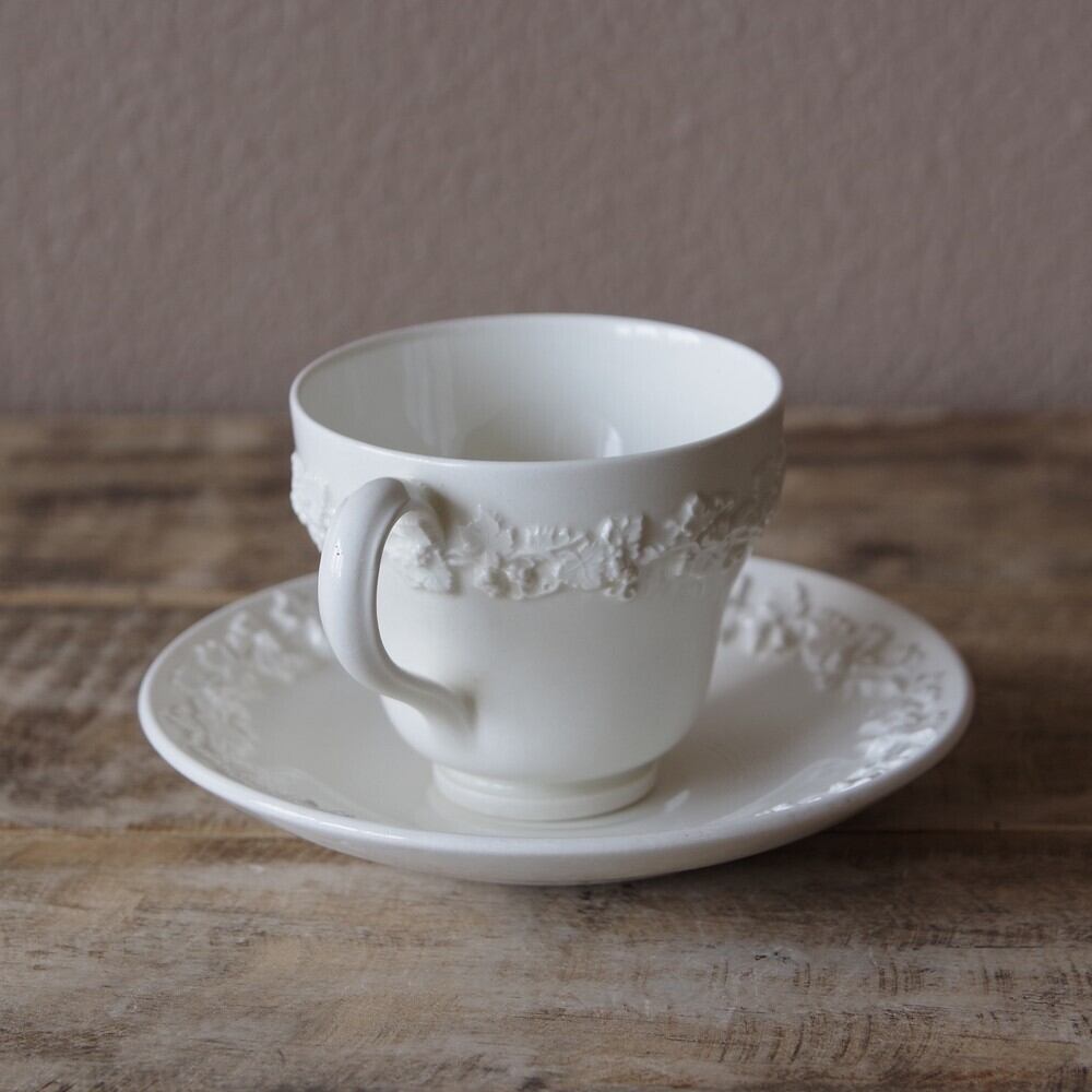 ウェッジウッド クィーンズウェア 白 葡萄 レリーフ デミタスカップ ソーサー #200213-2 Wedgwood Queens ware アンティーク 食器 ヴィンテージ