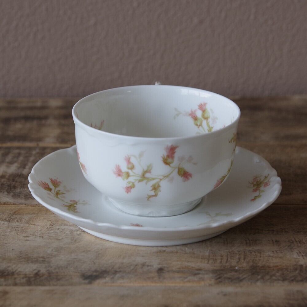 フランス製 ヴィンテージ リモージュ アビランド ピンク あざみ 花柄 金彩 ティーカップ ソーサー #200214-5 Limoges Haviland アンティーク 食器 陶器 France