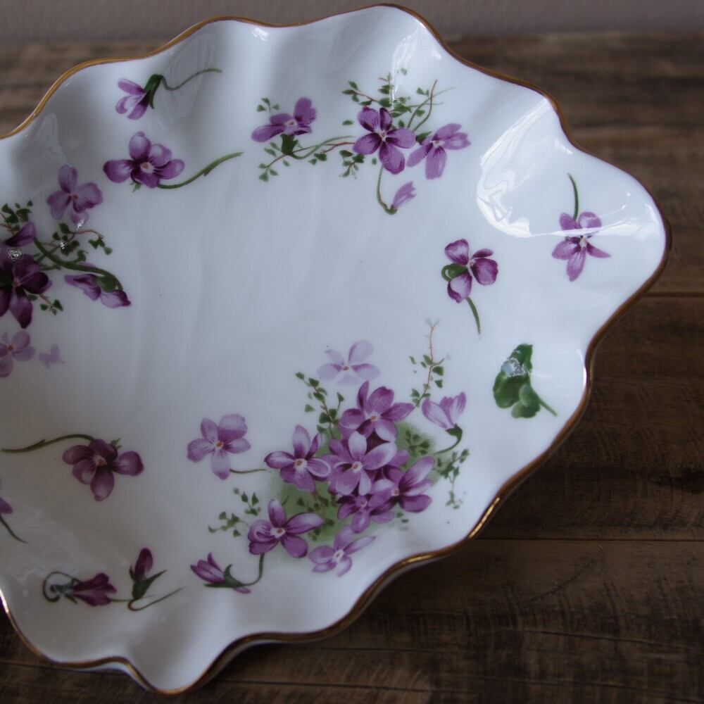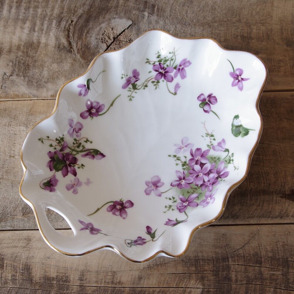 イギリス製 ヴィンテージ 雑貨 ハマースレイ ヴィクトリアンバイオレット トリンケットディッシュ 木の葉型 小皿 #200218-08 Hammersley すみれ 花柄 アンティーク 陶器 小物入れ