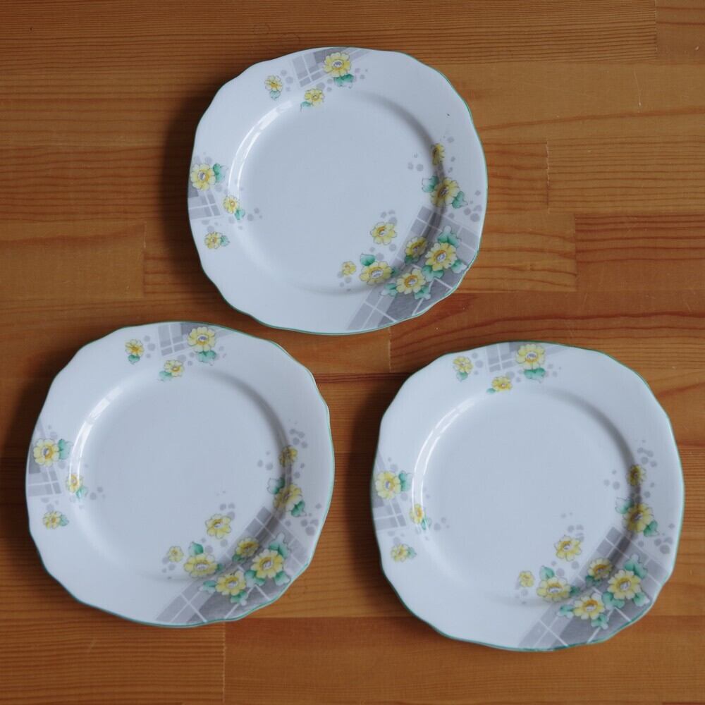 イギリス製 アンティーク 食器 陶器 Gladstone 黄色 花柄 デザートプレート ケーキ皿 16cm #200219-1~3 グラッドストーン レトロ スクエア 角皿 アールデコ