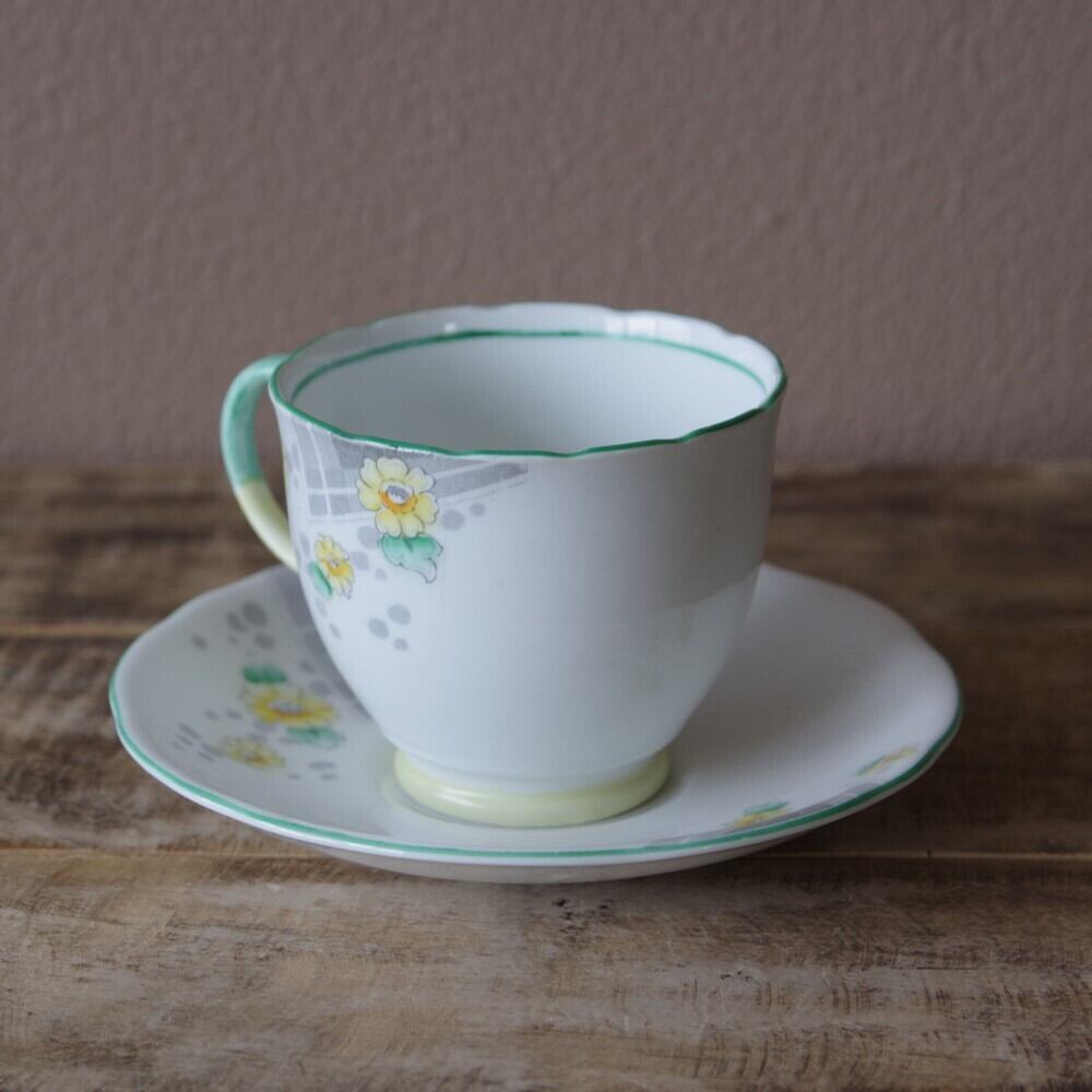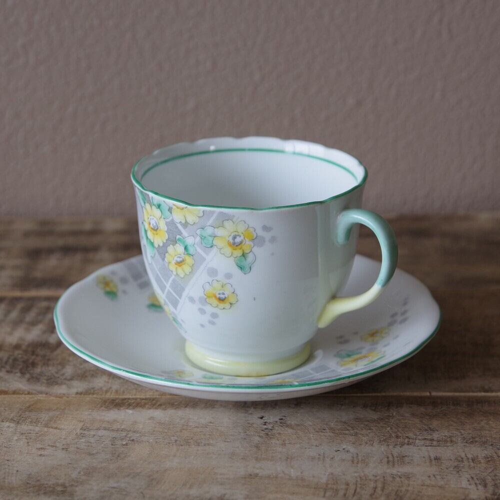 イギリス製 アンティーク 食器 Gladstone 黄色 花柄 コーヒーカップ ソーサー #200219-1,2 グラッドストーン レトロ 手描き ヴィンテージ 陶器