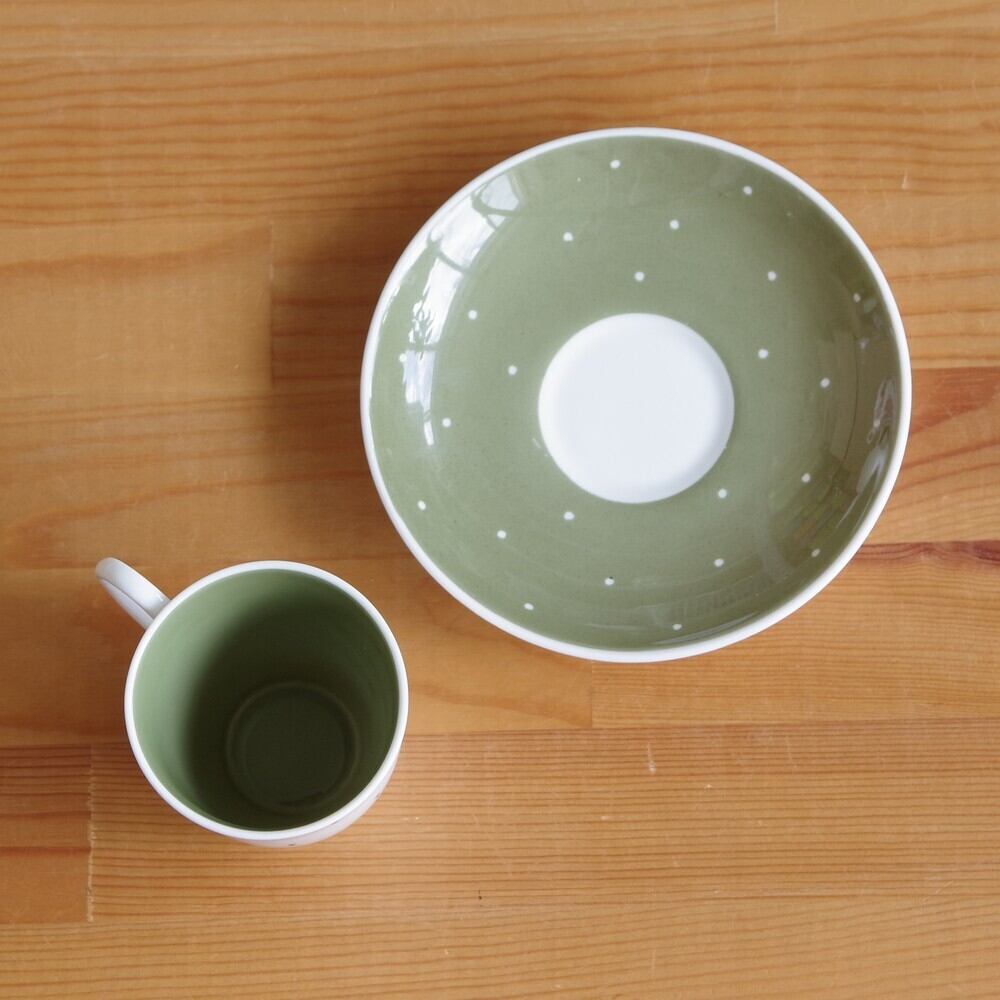 ソーサーにはグリーン地に白の小さなドット柄が入っています。