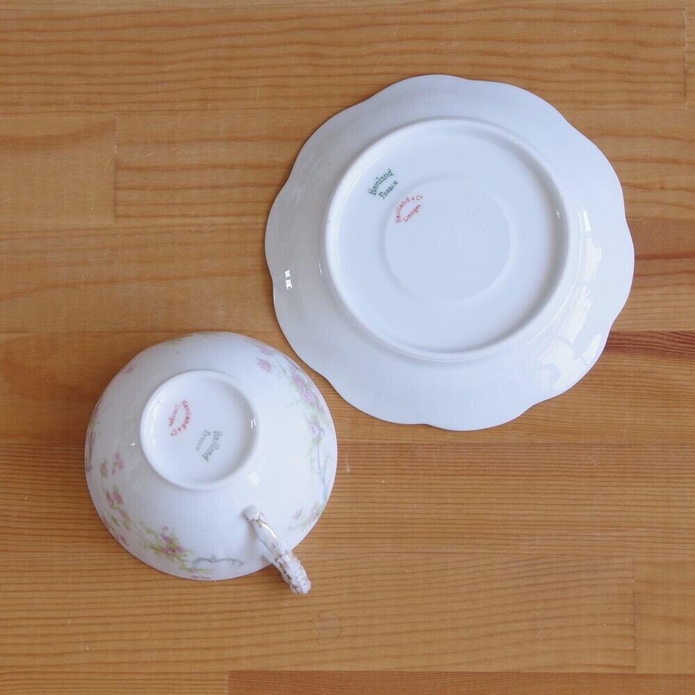 フランス製 ヴィンテージ リモージュ 陶器 アビランド ピンク 薔薇 花柄 金彩 カップ&ソーサー #200221-1 Limoges Haviland アンティーク 食器 France