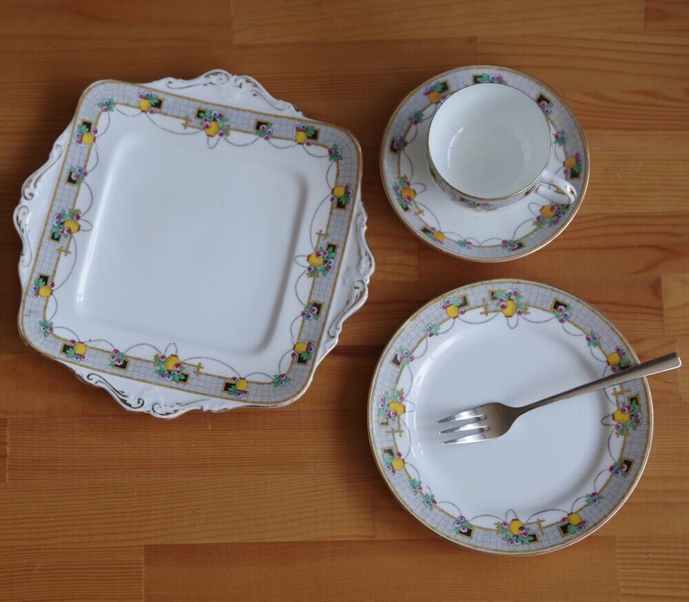 イギリス製 アンティーク 食器 パラゴン 花柄 アールデコ スクエアプレート 角皿 #200226 Paragon FINE BONE CHINA レトロ ヴィンテージ