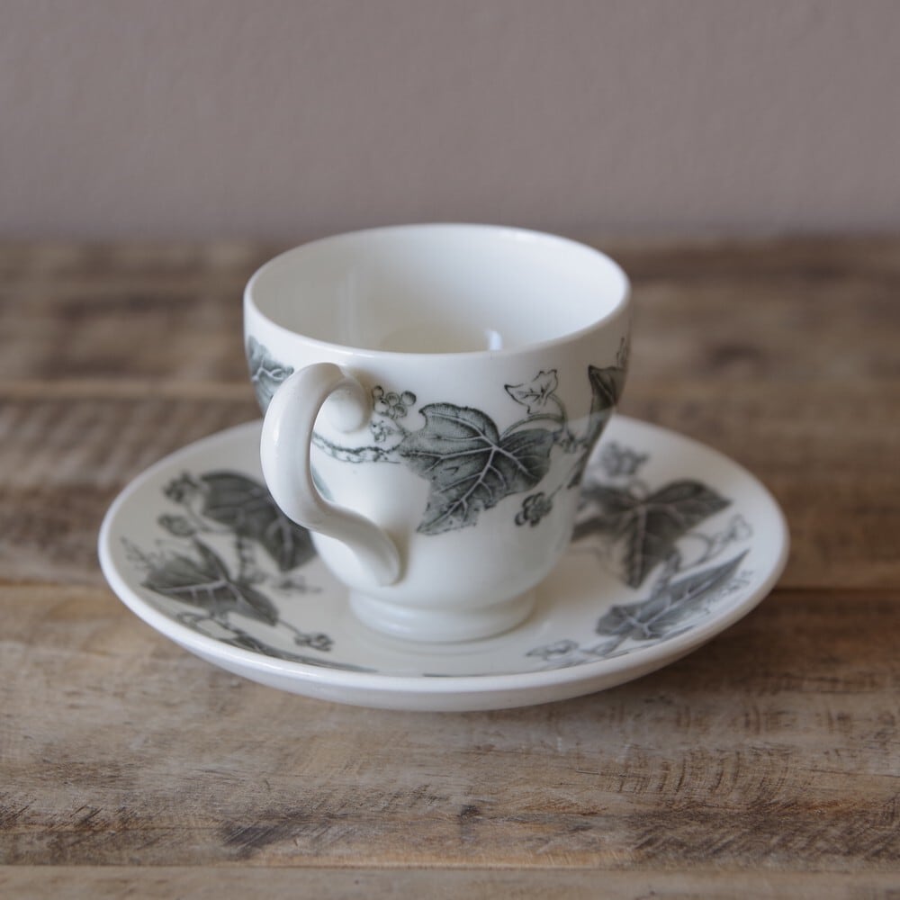 アンティーク食器 ウェッジウッド ナポレオンアイビー デミタスカップ ソーサー ボタニカル 蔦 #200227-1,2 Wedgwood Napoleon Ivy 陶器 モノクローム ブラック