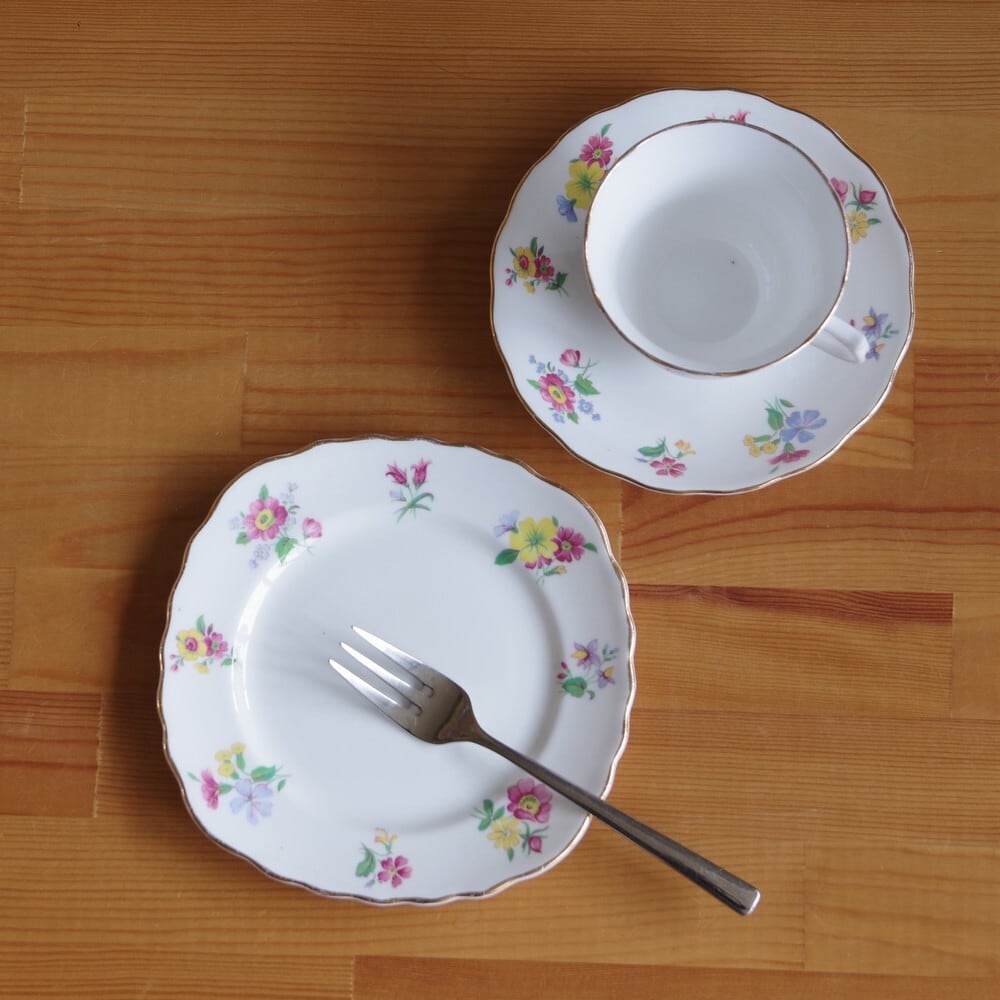 イギリス アンティーク 食器 Vale ベール社 カラフル 花柄 デザートプレート ケーキ皿 16cm #200303-1~3 レトロ シャビー 陶器 BONE CHINA ENGLAND