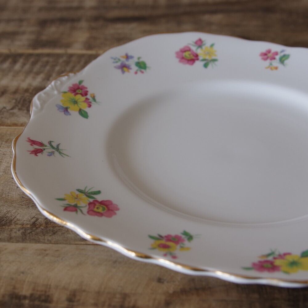 イギリス アンティーク 食器 Vale ベール社 カラフル 花柄 持ち手付き スクエアプレート 22cm #200303 レトロ シャビー 陶器 BONE CHINA ENGLAND