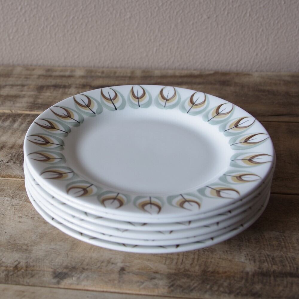 ロイヤルグラフトン 手描き リーフ柄 デザートプレート ケーキ皿 15cm ビンテージ 食器 #200305-1~6 レトロ アンティーク イギリス製 Fine Bone China