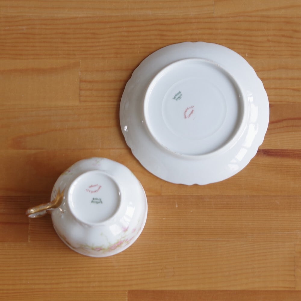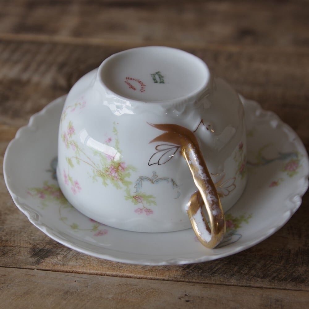 フランス製 アンティーク 陶器 リモージュ アビランド ピンク バラ 花柄 ティーカップ ソーサー #200313-4 Limoges Haviland France 食器 ゴールド