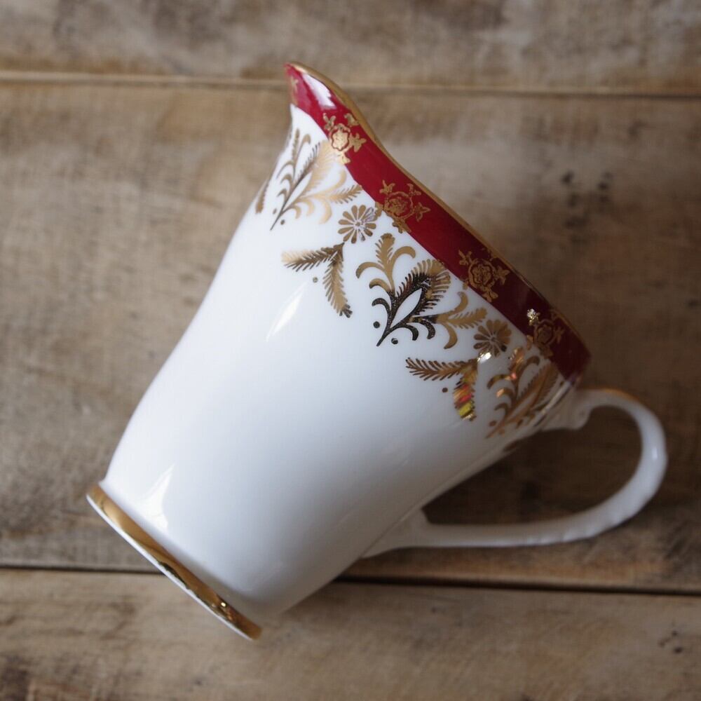イギリス製 ヴィンテージ ロイヤルグラフトン ワインレッド ゴールド クリーマー #200317 レトロ モダン Royal Grafton 陶器 食器 アンティーク