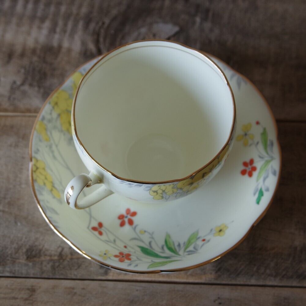 ロイヤルグラフトン アールデコ 赤 黄色 花柄 コーヒーカップ ソーサー Laburnum #200318-1~4 イギリス アンティーク ヴィンテージ レトロ 食器 陶器