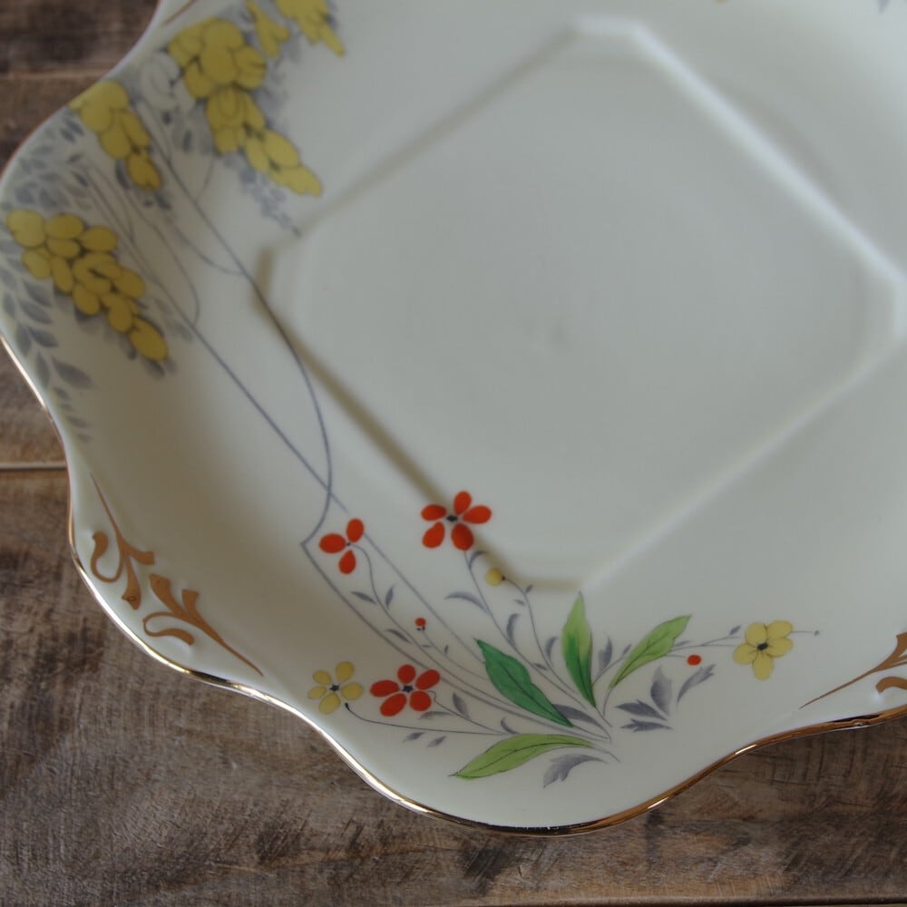 イギリス アンティーク 食器 ロイヤルグラフトン 赤 黄色 花柄 持ち手付き スクエアプレート 角皿 Laburnum #200318 Royal Grafton アールデコ ヴィンテージ レトロ 食器 陶器