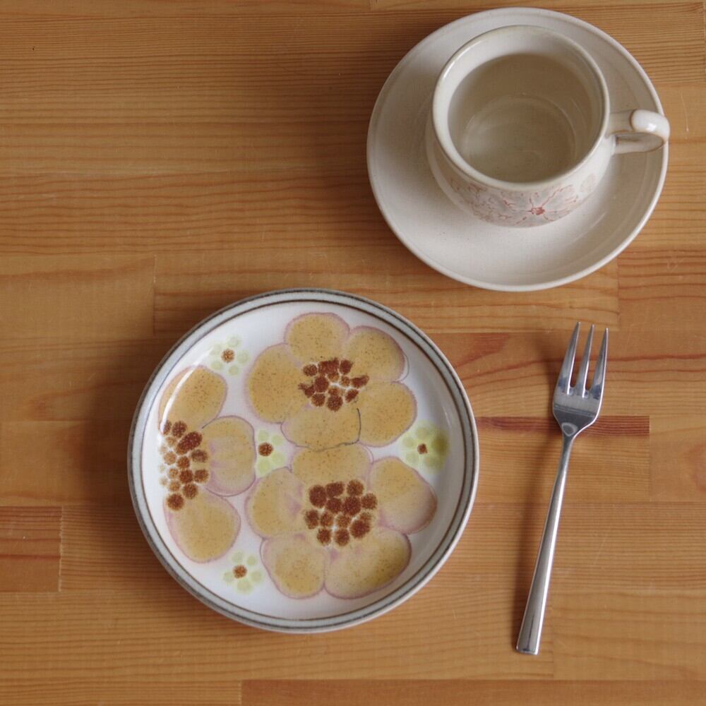 デンビー ミンストレル DENBY Minstrel デザートプレート 17cm ケーキ皿 #200324-1 イギリス ヴィンテージ 食器 陶器 レトロモダン 黄色 花柄