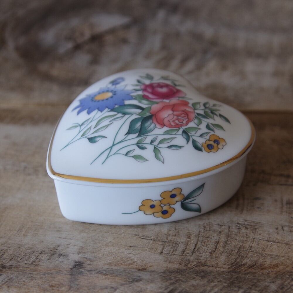Wedgwood ウェッジウッド Avebury エーブベリー ハート型 トリンケットボックス #200325 イギリス製 ヴィンテージ 陶磁器 小物入れ 蓋物 花柄