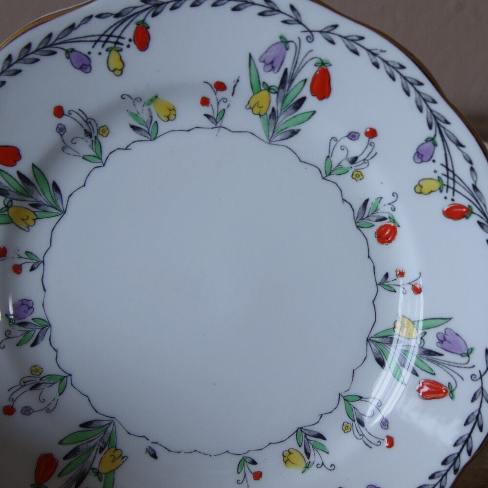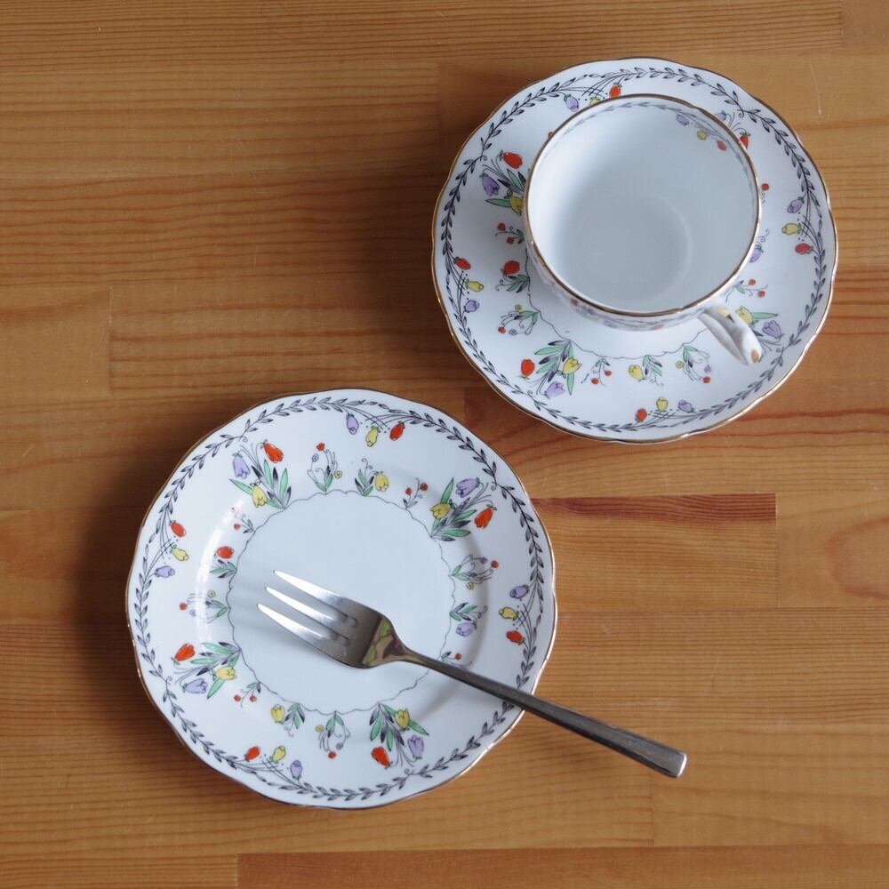 イギリス ヴィンテージ 食器 カラフル 花柄 デザートプレート ケーキ皿 15cm #200401-1~4 アンティーク レトロ 陶器 Gresvenor グローブナー アールデコ