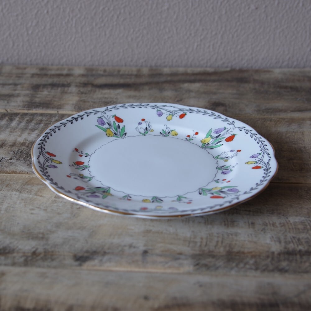 イギリス ヴィンテージ 食器 カラフル 花柄 デザートプレート ケーキ皿 15cm #200411-1 アンティーク レトロ 陶器 Gresvenor グローブナー アールデコ