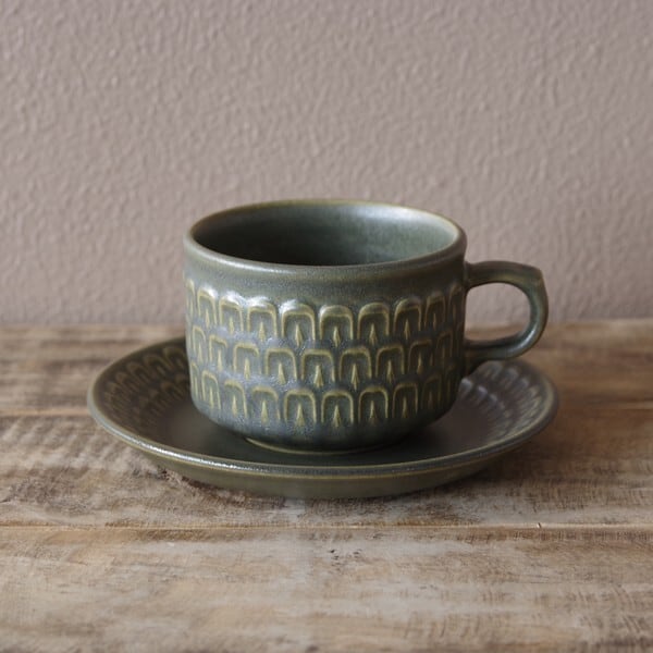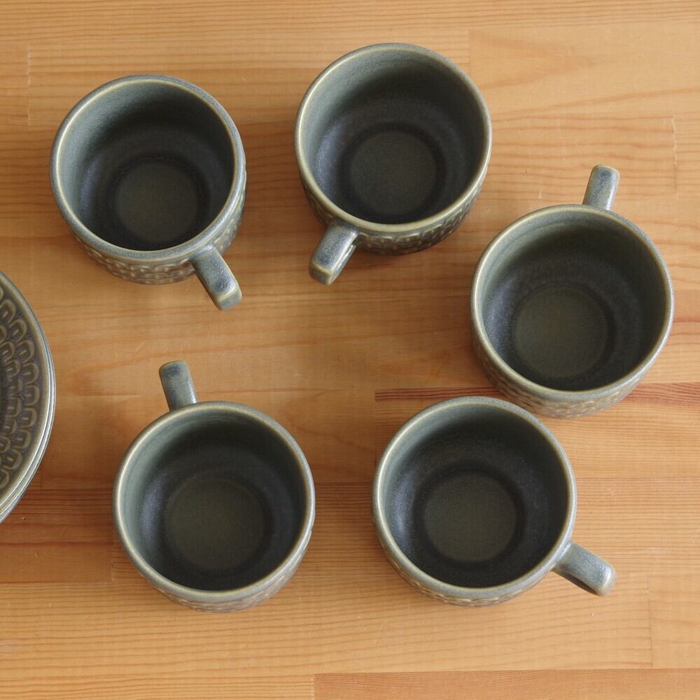 ウェッジウッド カンブリアン コーヒーカップ ソーサー Wedgwood Cambrian #200520-1~5 ビンテージ レトロモダン グリーン 食器 陶器 渋め