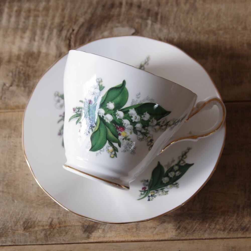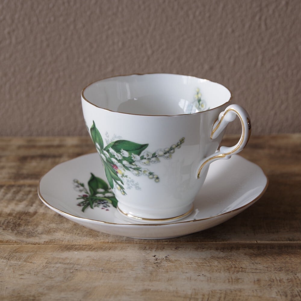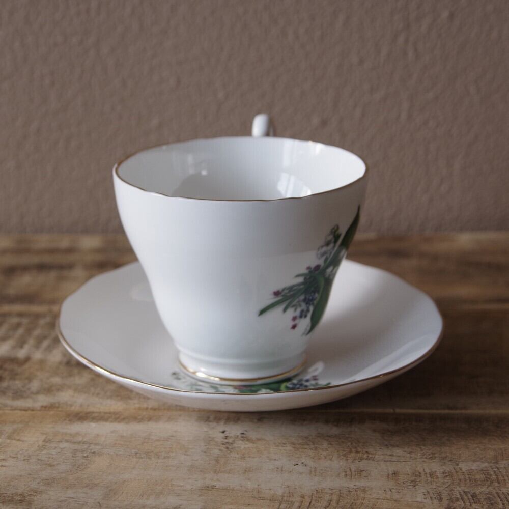 イギリス製 アンティーク食器 レトロ すずらん 花柄 コーヒーカップ ソーサー #200522 ロイヤル インペリアル 陶磁器 Royal Imperial