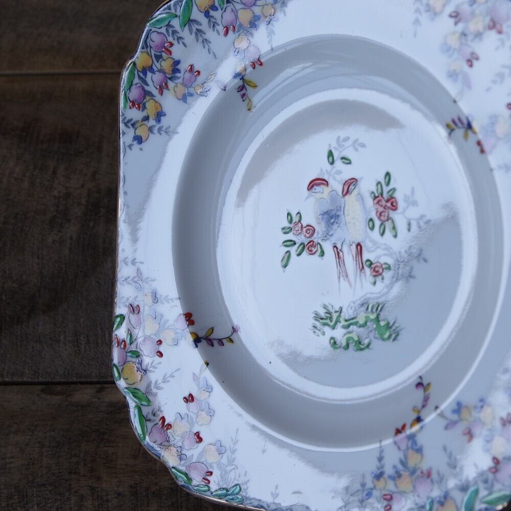 イギリス アンティーク 食器 鳥 デザートプレート ケーキ皿 15cm Wetley China ウェットリー #200522-1 ヴィンテージ 陶器 アールデコ モダン レトロ スクエアプレート