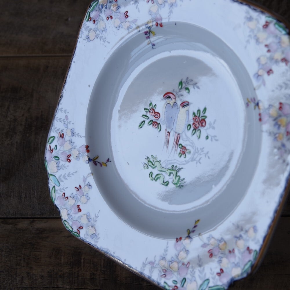 イギリス アンティーク 食器 鳥 デザートプレート ケーキ皿 15cm Wetley China ウェットリー #200522-2 ヴィンテージ 陶器 アールデコ モダン レトロ スクエアプレート