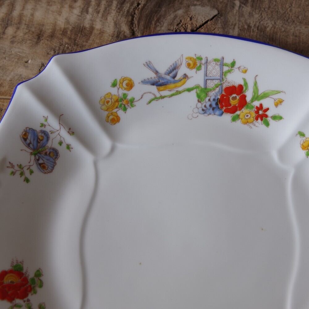 イギリス アンティーク 食器 コーリングウッド スクエアプレート 24cm 中皿 鳥 花 蝶 #200527 ヴィンテージ アールデコ レトロ 陶器 Collingwood