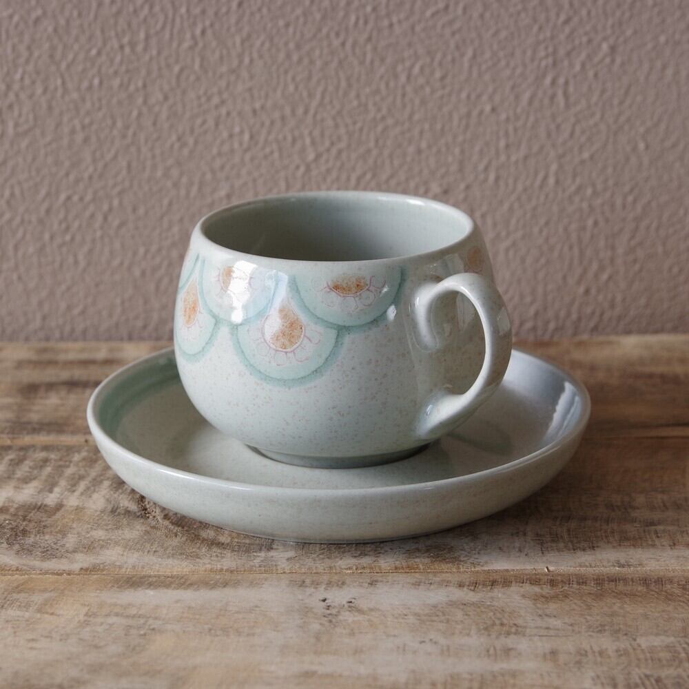 ソーサーも同じグリーン色で、リム部分に濃いグリーンのラインが入っています。