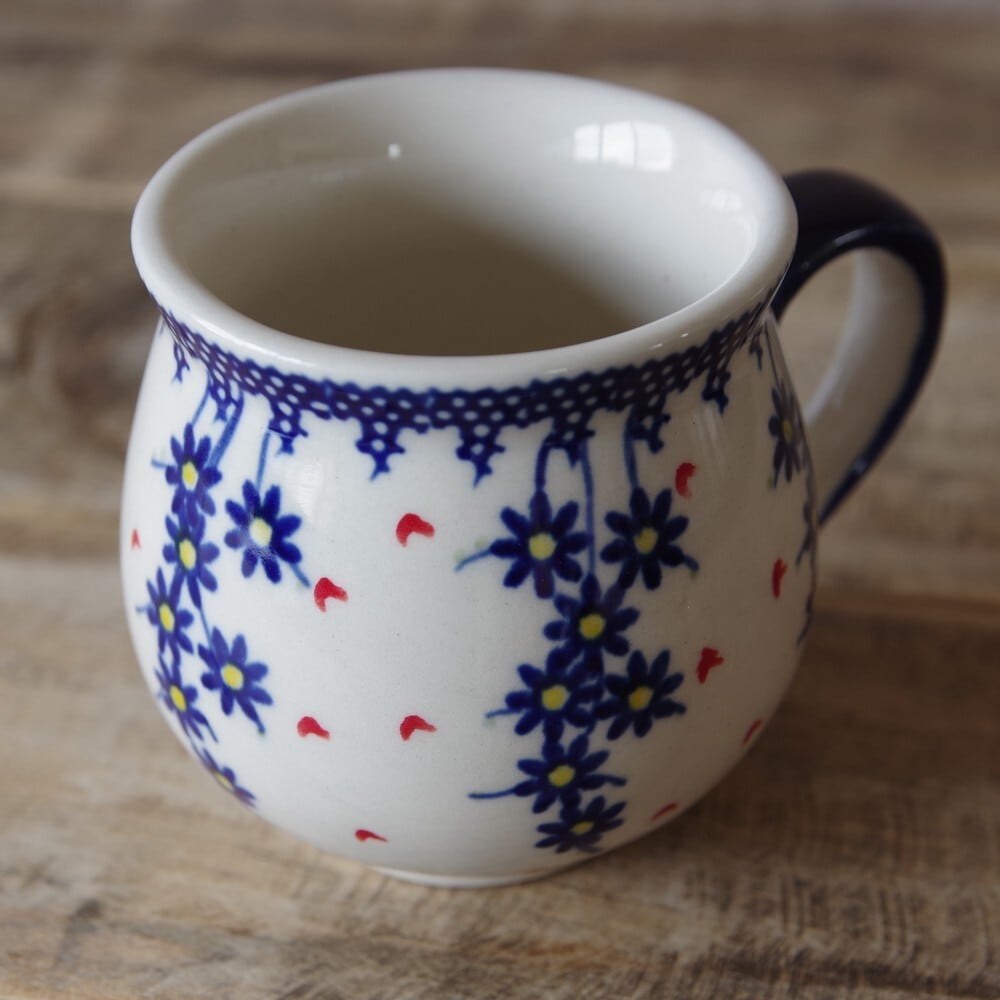 【再入荷】【新品】 ポーリッシュポタリー ポーランド食器 マグカップ 200ml 花すだれ 赤 ハート柄 K67-ALC94 ボレスワヴィエツ 陶器 Boleslawiec コーヒーカップ