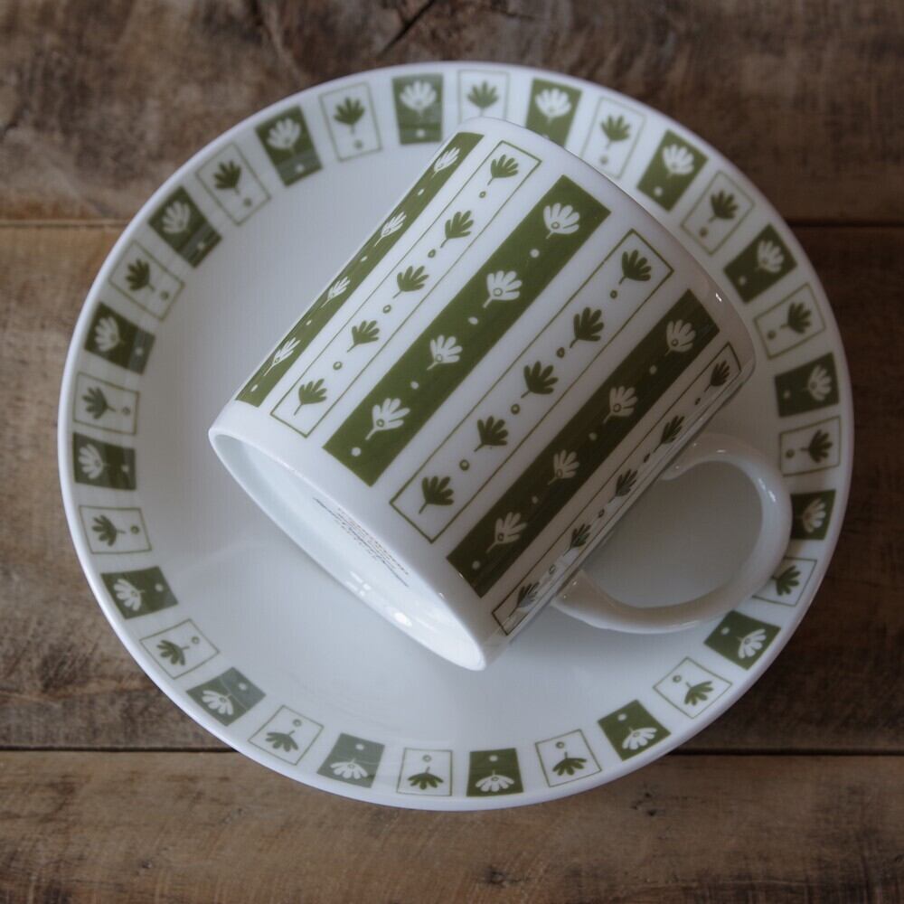 シンプルな寸胴のカップの側面に、グリーンのストライプが入り、
