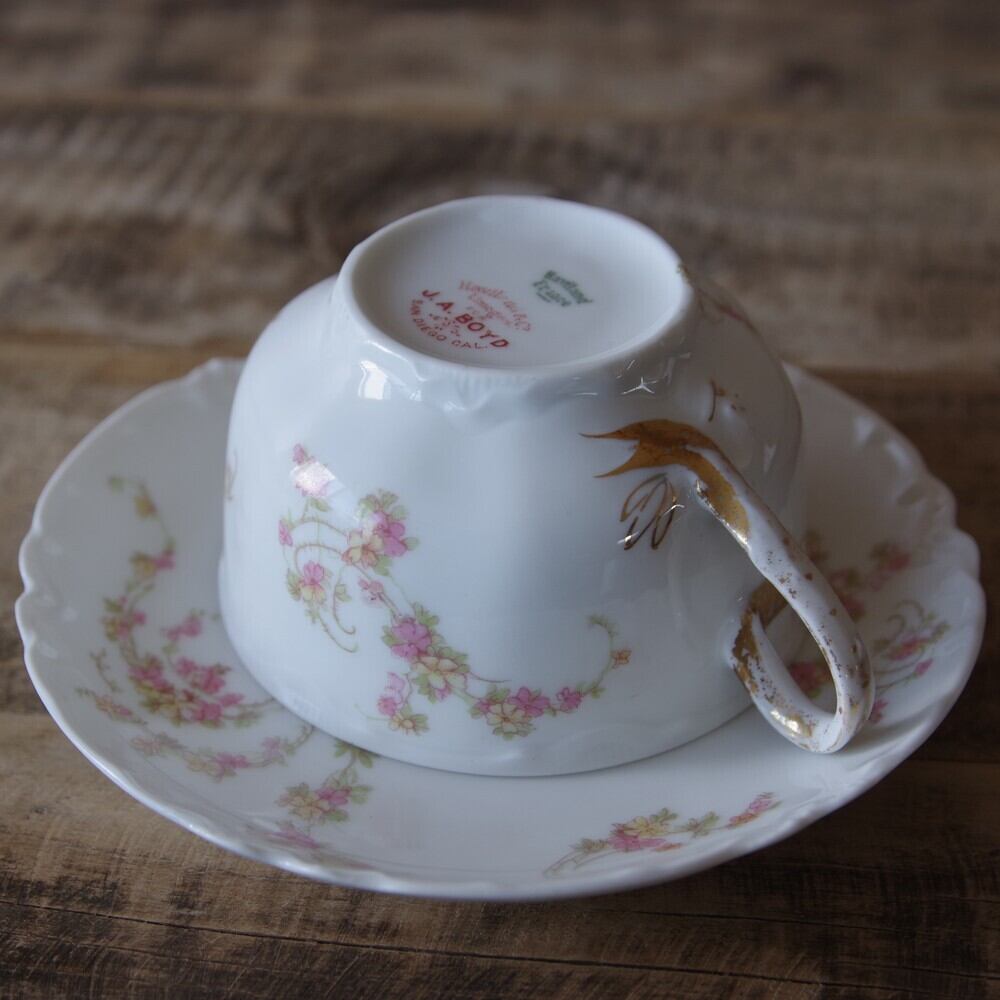 フランス アンティーク 食器 陶器 リモージュ アビランド ピンク 花柄 ティーカップ ソーサー #200624-7 Limoges Haviland France ゴールド ヴィンテージ