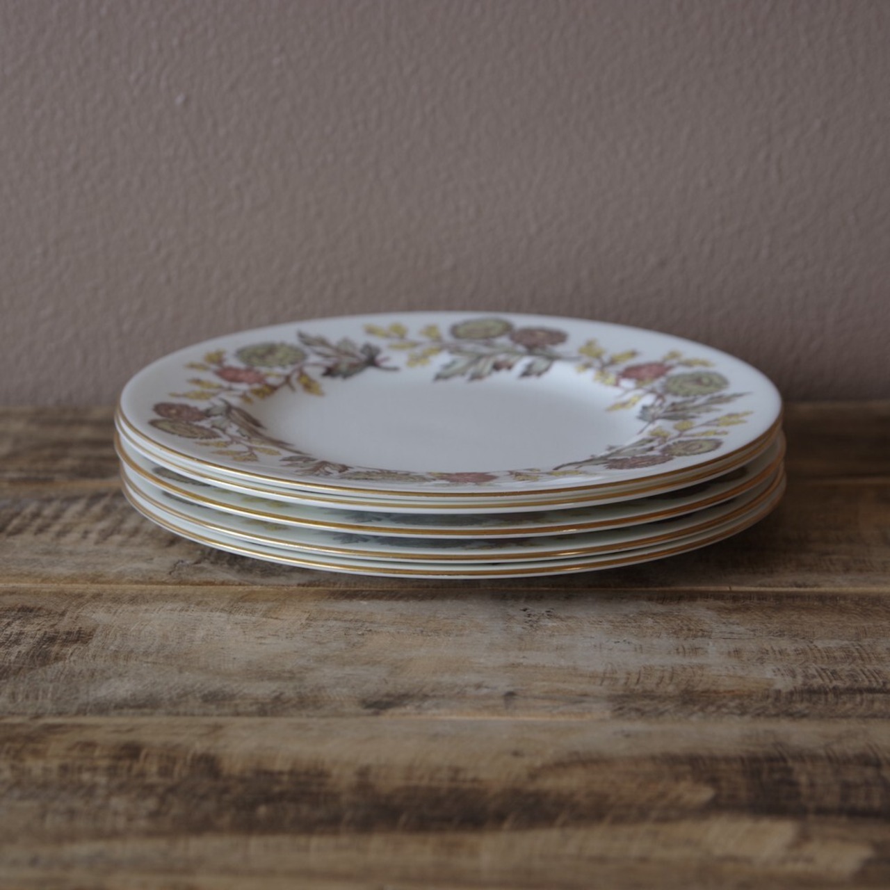 ウェッジウッド リッチフィールド 花柄 デザートプレート 20cm ケーキ皿 Wedgwood Lichfield #200630-1~5 アンティーク 陶磁器 レトロ ゴールド 矢車草 菊