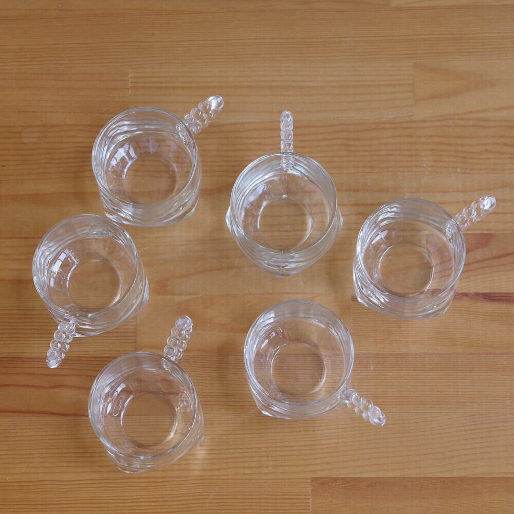 2個セット ヘーゼルアトラス Hazel Atlas ガラス コーヒーカップ クリア #200719-1~6 ヴィンテージ 食器 レトロ アメリカ 雑貨
