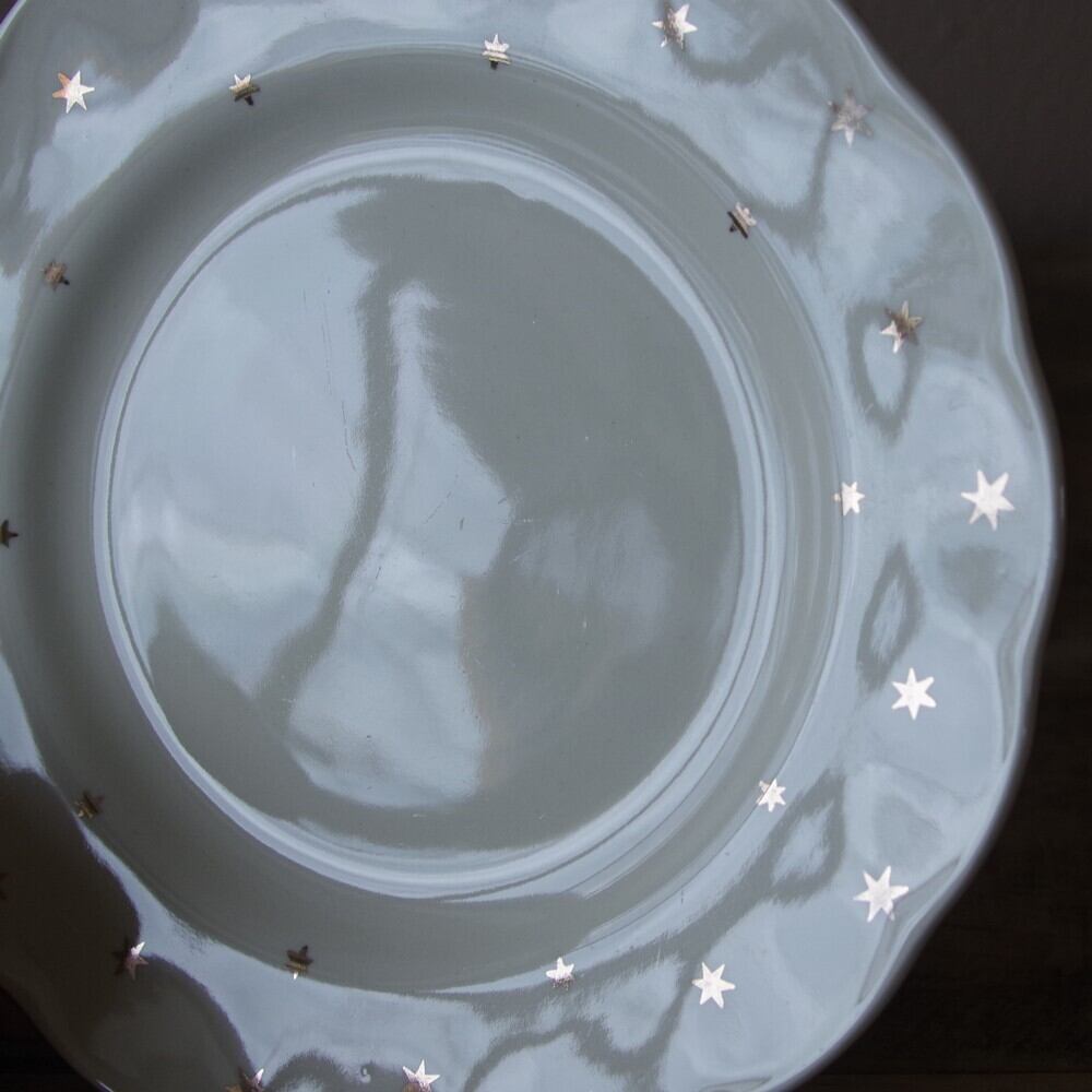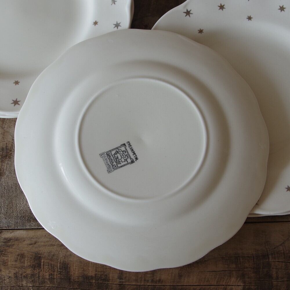 イギリス ヴィンテージ 食器 Grindley グリンドリー ゴールド 星 スター柄 デザートプレート ケーキ皿 18cm #200726-1~6 レトロ 陶器 アイボリー アンティーク CREAMPETAL